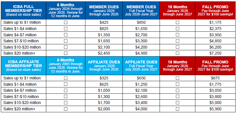 Thank you for your interest in joining ICBA! Please refer to the Become a Member page to view the benefits of our two Membership types (Full or Affiliate) and to view costs for all tiers and current promotions. If you have additional questions, please reach out to us at Office@ICBAinc.com.